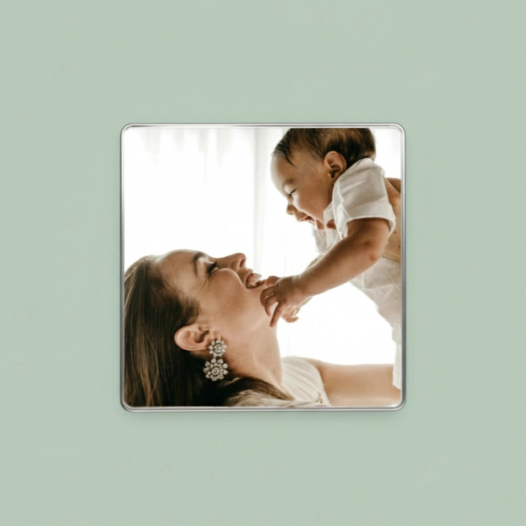 Oubliez les magnets en plastique classiques. Offrez à vos souvenirs l'écrin qu'ils méritent avec ce magnifique magnet photo à la finition métallique argentée.