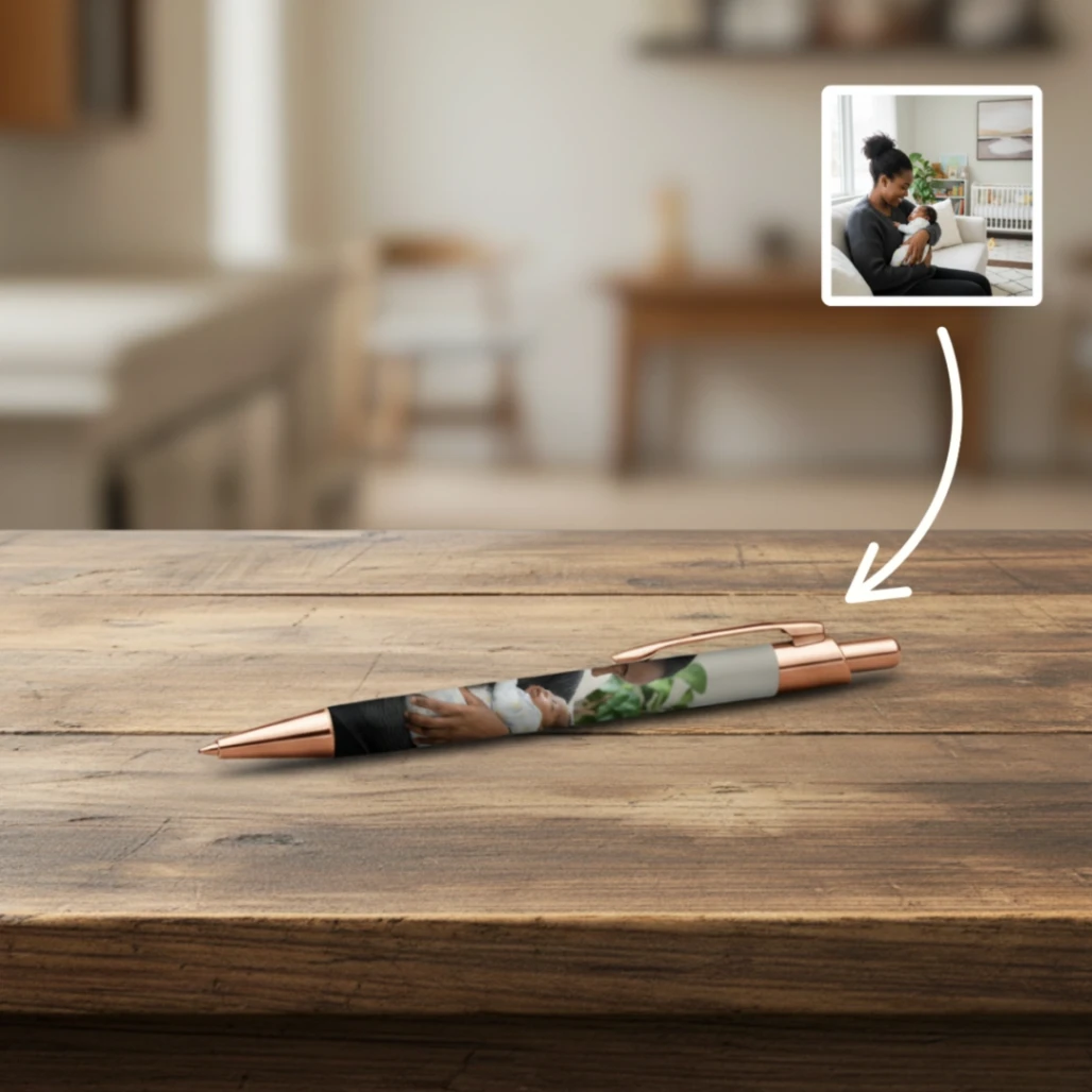 Offrez-vous ou offrez à vos proches un stylo unique, gravé de souvenirs inoubliables. Ce stylo élégant, disponible en version argentée ou or rose, peut être personnalisé avec la photo de votre choix pour un rendu raffiné et sentimental. Parfait comme cadeau personnalisé, souvenir d’entreprise, ou présent pour un être cher, il allie style et émotion.